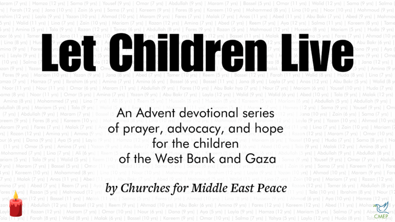 Churches for Middle East Peace promotes a comprehensive resolution to conflicts in the Middle East.