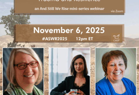 Watch the kickoff our countdown to And Still We Rise 2024. And Still We Rise (ASWR) seeks to elevate the voices and contributions of Palestinian women working to build peace in their homes, communities, and the world, while also creating opportunities for meaningful exchange between Palestinian and American women. This webinar, designed to introduce this project, its history, and its mission, features remarks from CMEP executive director, Rev. Dr. Mae Elise Cannon, And Still We Rise Coordinator Tamar Haddad, and ASWR Leadership Team Member, Shireen Awwad Hilal from Bethlehem Bible College.